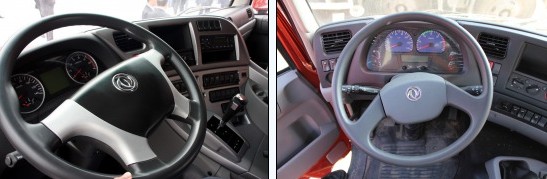 新天龍的前車(chē)輪帶有保護罩,顯得更為美觀(guān)。不過(guò)在后來(lái)的介紹資料中東風(fēng)天龍又取消了該配置,不知道在正式量產(chǎn)車(chē)型上會(huì )不會(huì )作為標配。