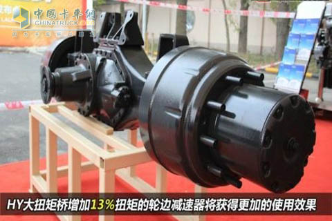 在2012年的上汽依維柯紅巖商務(wù)年會(huì )上,零配件展示區展示了技術(shù)升級的紅巖大扭矩輪邊減速橋。該產(chǎn)品是由上汽依維柯紅巖商用車(chē)有限公司零部件事業(yè)部在原“30”紅巖橋基礎上進(jìn)行優(yōu)化設計開(kāi)發(fā)出的新產(chǎn)品。速比范圍由3.866-8.88。