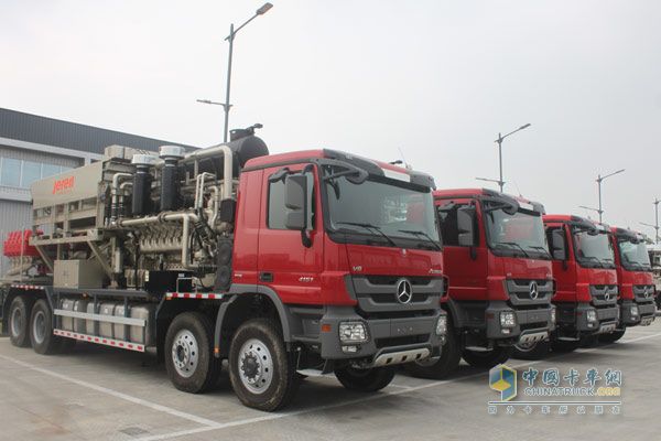 卡車(chē)網(wǎng)2013年10月21日報道:近日,在山東煙臺舉辦的頁(yè)巖氣勘探開(kāi)發(fā)技術(shù)研討會(huì )上,杰瑞集團發(fā)布了全球最新一代頁(yè)巖氣壓裂成套裝備并在現場(chǎng)進(jìn)行了聯(lián)機測試。此次發(fā)布的成套裝備全部采用梅賽德斯-奔馳Actros卡車(chē)底盤(pán),產(chǎn)品涉及油田作業(yè)使用的壓裂車(chē)、混砂車(chē)、管匯車(chē)和儀表車(chē),彰顯了梅賽德斯-卡車(chē)在油田領(lǐng)域的多元應用和強大實(shí)力。