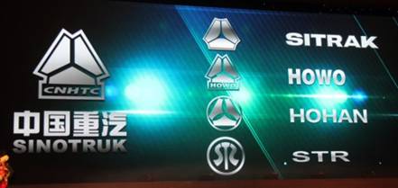 過(guò)去的兩年里,中國重汽在重卡三強中的市場(chǎng)份額都是墊底。對此,重汽高層研究認為其子品牌太多太雜是重要原因之一。為此,2013年底,中國重汽對其旗下各系列產(chǎn)品重新進(jìn)行了品牌梳理、整合和市場(chǎng)定位。即將現有產(chǎn)品(除成都王牌、海西福濼以外)全部囊括在汕德卡SITRAK(3片銀杏葉組成)、HOWO(脫胎于中國重汽集團LOGO,字母變?yōu)镠OWO)、豪瀚HOHAN(由集團LOGO演繹而成,不含字母)、斯太爾STR(品牌回歸,LOGO由STR字母藝術(shù)化而成)4大品牌之下(如下圖)。