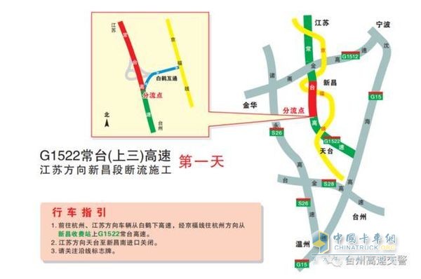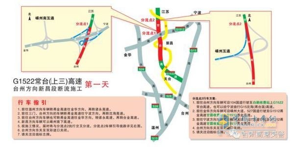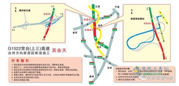 臺州方向施工施工路段:G1522常臺高速臺州方向新昌出口至白鶴出口