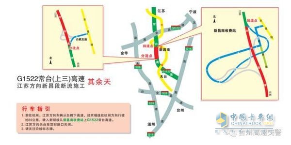 管制措施:斷流施工期間,高速公路管理部門(mén)分別將在G1522常臺高速臺州方向嵊州出口、嵊州樞紐、新昌出口等地采取分流措施。沿線(xiàn)收費站進(jìn)口關(guān)閉。對往江蘇方向行車(chē)的司機朋友們無(wú)影響。
