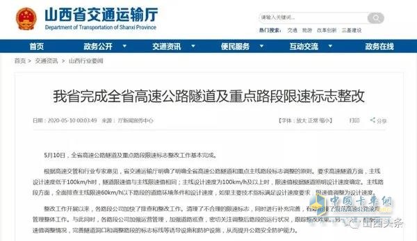 此前,山西省交通運輸廳明確了全省高速公路隧道和重點(diǎn)主線(xiàn)路段標志調整的原則,主線(xiàn)限速60公里以下路段將調整為設計速度。