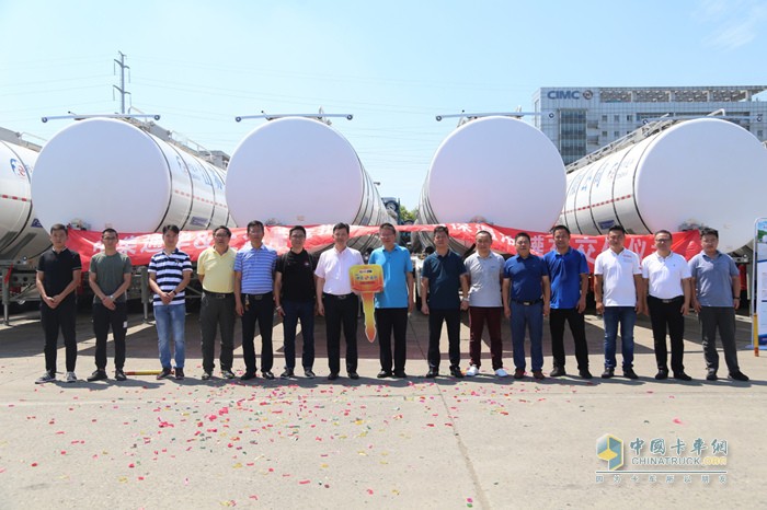 中集通華數字化罐車(chē)工廠(chǎng)總經(jīng)理朱志春向客戶(hù)交付象征財富的金鑰匙本批液罐車(chē)是中集通華為客戶(hù)提供的定制化產(chǎn)品,使用不銹鋼材料,采用全新車(chē)架結構,并加裝了輕量化懸掛、液壓支腿等先進(jìn)零部件,充分滿(mǎn)足客戶(hù)的個(gè)性化需求。