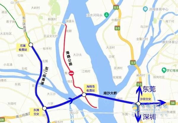 2、廣珠北段石基收費站—黃埔大橋—廣深沿江、廣深高速—東莞、深圳