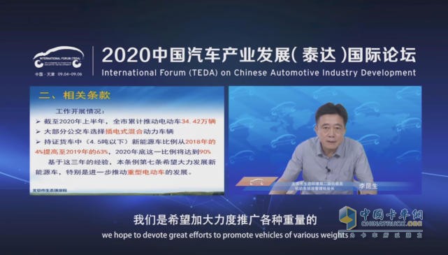 現在主要給優(yōu)惠政策的是輕型物流車(chē),其實(shí)從設計政策的本意,希望加大力度推廣各種重量的,不只是輕型物流的電動(dòng)車(chē),也希望向中型跟重型方向發(fā)展。但是由于受到續駛里程、電池成本還有充電的方便性等因素制約,這一階段,我們僅從輕型物流車(chē)方面入手,并取得了一定的進(jìn)展。比如從2018年開(kāi)始推廣的4%到2019年的63%,力爭到年底,領(lǐng)白天進(jìn)城通行證的輕型車(chē)比例達到90%。但是從《條例》制定的角度,我們是希望在所有的重量領(lǐng)域推廣電動(dòng)車(chē)。截止到今年上半年,我們北京市已經(jīng)累計推動(dòng)了34.42萬(wàn)輛新能源車(chē)。