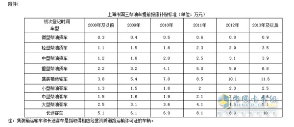 從地圖可以看出,國三車(chē)輛基本上在上海已經(jīng)到了無(wú)路可走的地方,也就意味著(zhù)要在上海駕駛就必須要換置車(chē)輛了,對于國三車(chē)的淘汰,上海也有相應的補貼政策,詳情可見(jiàn)下圖。