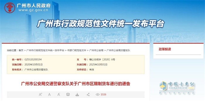 近日,廣州市公安局交通警察支隊發(fā)布了關(guān)于廣州市區限制貨車(chē)通行的通告。