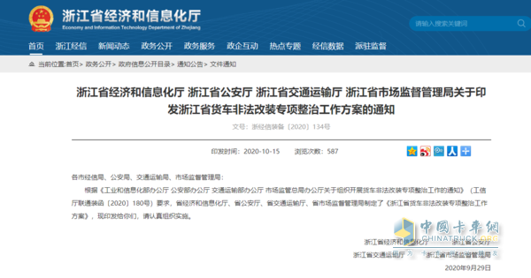 2020年10月21日,記者從浙江省經(jīng)信廳獲悉,省經(jīng)信廳、省公安廳、省交通運輸廳、省市場(chǎng)監督管理局近日印發(fā)實(shí)施《浙江省貨車(chē)非法改裝專(zhuān)項整治工作方案》。