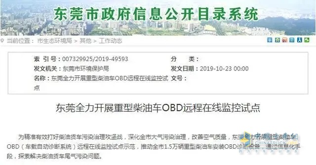 此前,河南、江蘇、廣東,山西等省份陸續發(fā)布通知,為打好柴油貨車(chē)污染治理攻堅戰,要求具備加裝條件的國四國五在用重型柴油車(chē)需加裝OBD遠程在線(xiàn)監控。