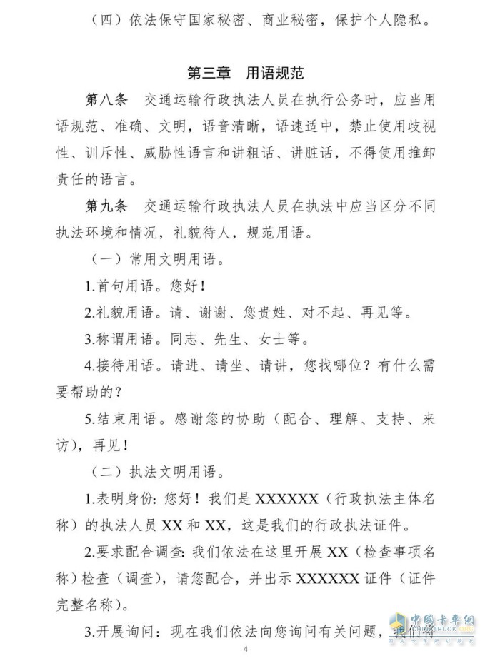 嚴格執行交通運輸行政執法人員持證上崗制度,禁止無(wú)證執法、超越職權執法,禁止不出示執法證件上崗執法。