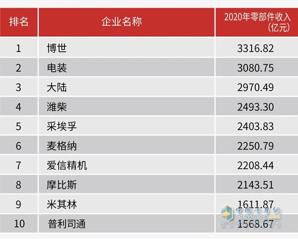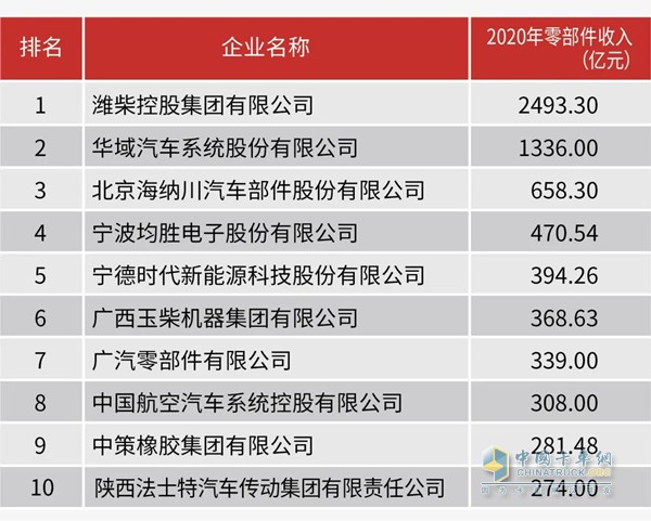 2021中國汽車(chē)零部件企業(yè)百強(前10位)