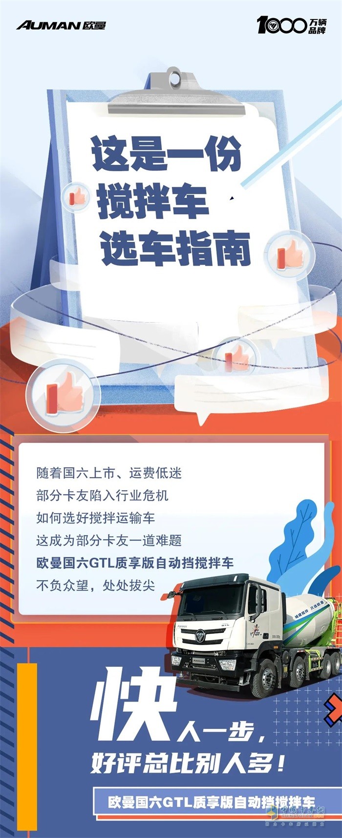 隨著(zhù)國六實(shí)施、運費低迷,部分卡友陷入行業(yè)危機,如何選好攪拌運輸車(chē)成為了部分卡友的一道難題。歐曼國六GTL質(zhì)享版自動(dòng)擋攪拌車(chē)不負眾望,處處拔尖。