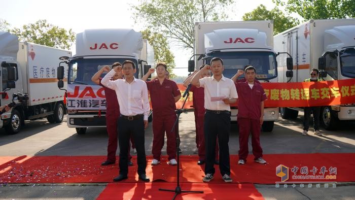 2022年5月6日,10輛江淮輕卡醫療廢物轉運車(chē)在江淮專(zhuān)用車(chē)公司正式交付安徽浩悅環(huán)境科技有限責任公司。江淮輕型商用車(chē)營(yíng)銷(xiāo)公司總經(jīng)理助理陳哲冰,江淮輕型商用車(chē)制造公司副總經(jīng)理、江淮專(zhuān)用車(chē)公司總經(jīng)理張時(shí)忠,安徽浩悅環(huán)境科技有限責任公司副總經(jīng)理高巍以及相關(guān)人員參加交車(chē)儀式。即日起,10輛“抗疫1號”醫療廢物轉運車(chē)駛向抗疫一線(xiàn),為疫情常態(tài)化防控貢獻力量。