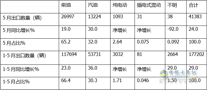 值得一提的是,從各類(lèi)動(dòng)力車(chē)型出口同比增長(cháng)看,無(wú)論是5月還是1-5月,純電動(dòng)出口數量同比均為凈增長(cháng);說(shuō)明純電動(dòng)卡車(chē)市場(chǎng)潛力巨大,或許是未來(lái)卡車(chē)出口市場(chǎng)中的新增長(cháng)點(diǎn)!