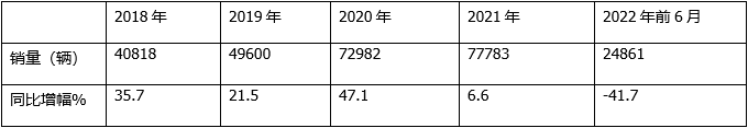 上表顯示,近5年來(lái),冷藏車(chē)在2018年—2021年4年中,銷(xiāo)量同比一直是增長(cháng)的。也就是說(shuō),冷藏在近4年的持續演繹了“4連漲”,這種長(cháng)期持續增長(cháng)的態(tài)勢,到了今年上半年卻出現了同比第一次下降的跡象,而且同比降幅較大,超4成(-41.7%)。