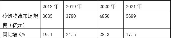 表3,近年中國冷鏈物流市場(chǎng)規模(數據來(lái)源:中冷聯(lián)盟及艾媒咨詢(xún))