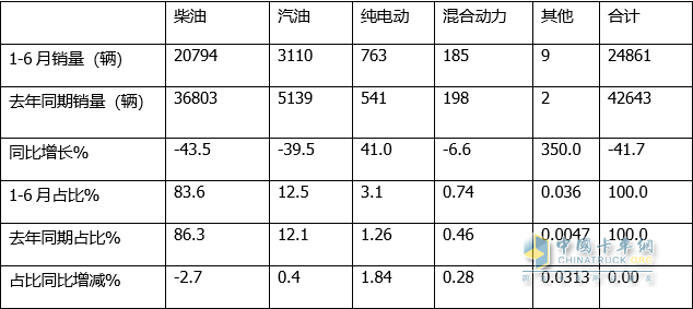 上表說(shuō)明,按搭載的動(dòng)力種類(lèi)劃分2022年上半年冷藏車(chē)銷(xiāo)量,其特征是: