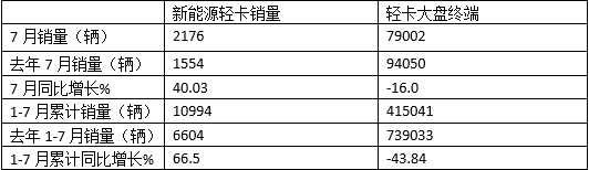 表,5:2022年7月及1-7月新能源輕卡銷(xiāo)量同比與輕卡大盤(pán)比較(數據來(lái)源:終端上牌及電車(chē)資源)