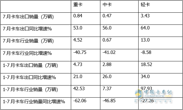 總之,無(wú)論是今年7月還是1-7月卡車(chē)出口數量均創(chuàng )近年同期新高。