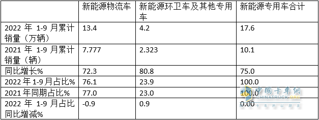 截圖1,2022年9月及1-9月新能源專(zhuān)用車(chē)銷(xiāo)量及同比(來(lái)源:中國汽車(chē)流通協(xié)會(huì )上牌信息)截圖1,2022年9月及1-9月新能源專(zhuān)用車(chē)銷(xiāo)量及同比(來(lái)源:中國汽車(chē)流通協(xié)會(huì )上牌信息)