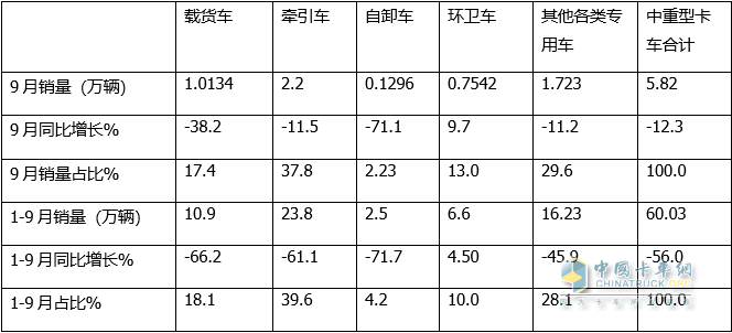 總之,無(wú)論是今年9月還是1-9月,載貨車(chē)市場(chǎng)均跑輸中重卡大盤(pán)。