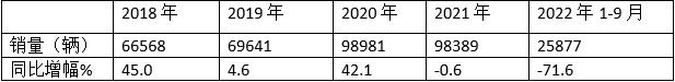 最新終端上牌數據顯示,2022年1-9月攪拌車(chē)累計實(shí)際銷(xiāo)售25877輛,同比(去年1-9月累計銷(xiāo)售91079輛,見(jiàn)下截圖)下降71.6%??梢?jiàn)今年前三季度攪拌車(chē)市場(chǎng)幾乎呈現“斷崖式”下降,確實(shí)比較慘淡。