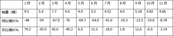 特點(diǎn)二:無(wú)論是11月還是前11月,今年銷(xiāo)量均創(chuàng )近年同期新低