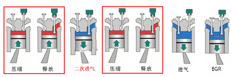 傳統壓縮釋放式制動(dòng),缸內氣體1次壓縮和釋放來(lái)實(shí)現制動(dòng)效果。相較于原有技術(shù),東風(fēng)商用車(chē)自主研發(fā)的高功率制動(dòng)系統,通過(guò)缸內氣體多次壓縮和釋放來(lái)實(shí)現,制動(dòng)效率可達到正功率的150%。東風(fēng)高功率制動(dòng)系統,改變發(fā)動(dòng)機排氣門(mén)的配氣相位,在一個(gè)工作循環(huán)內,在壓縮沖程和排氣,沖程末端開(kāi)啟排氣門(mén),此時(shí)發(fā)動(dòng)機在壓縮缸內空氣時(shí)所做的功,便被釋放到排氣系統。