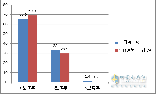 ---11月及1-11月C型房車(chē)銷(xiāo)量占比均在7成左右(分別為65.6%和69.3%),占據了11月和1-11月房車(chē)市場(chǎng)的主體地位;