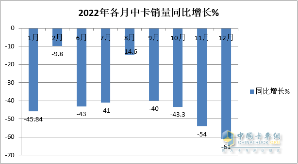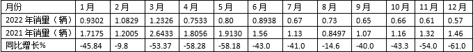 表1,根據中汽協(xié)數據,2022年各月中卡銷(xiāo)量及同比: