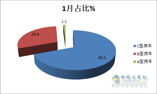 可見(jiàn),今年1月的房車(chē)市場(chǎng)均呈現C型房車(chē)和B型房車(chē)二元結構,A型房車(chē)幾乎可以忽略。
