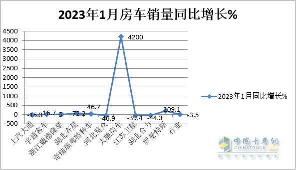 根據21RV提供的上牌數據,2023年1月及近年同期房車(chē)銷(xiāo)量及同比統計: