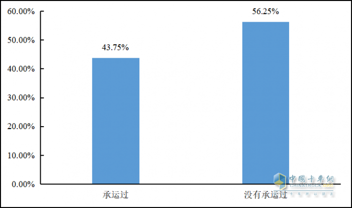 大部分司機沒(méi)有承運過(guò)低于成本價(jià)的貨物。調查顯示,56.25%的貨車(chē)司機表示沒(méi)有以低于成本價(jià)承運貨物,但也有43.75%的貨車(chē)司機表示以低于成本價(jià)的價(jià)格承運過(guò)貨物。在以低于成本價(jià)承運過(guò)貨物的司機中有一半以上(54.22%)沒(méi)有穩定貨源,有接近一半(48.09%)的司機所駕駛車(chē)輛仍有貸款,有40.94%的貨車(chē)司機仍然背負房貸,經(jīng)濟壓力迫使司機不得不承運低于成本價(jià)的貨物來(lái)抵減固定支出成本的壓力。
