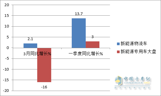 總之,無(wú)論是今年3月還是一季度,新能源物流車(chē)同比增速均跑贏(yíng)新能源專(zhuān)用車(chē)大盤(pán)。