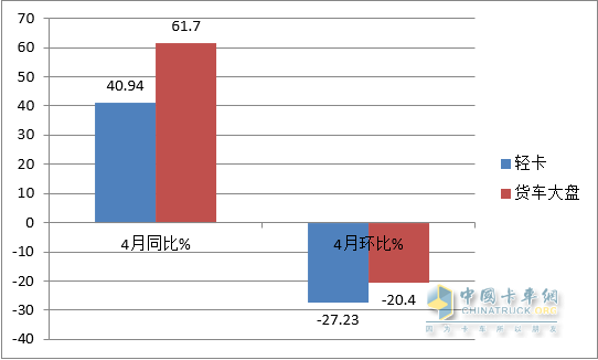 總之,今年4月輕卡市場(chǎng)同環(huán)比均跑輸貨車(chē)大盤(pán)。據分析主要原因有: