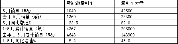 可見(jiàn),無(wú)論是今年5月還是1-5月,新能源牽引車(chē)同比均跑輸牽引車(chē)大盤(pán)。據分析主要原因是今年新能源汽車(chē)購置補貼的取消導致的。