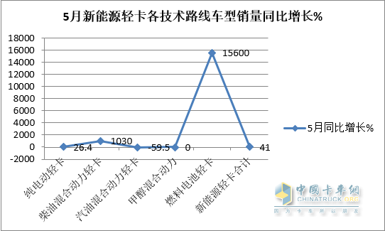 ---燃料電池輕卡銷(xiāo)量157輛,同比爆漲15600%,呈現“大爆發(fā)”之勢頭,跑贏(yíng)大盤(pán)且領(lǐng)漲今年5月新能源輕卡大盤(pán);據分析主要是今年以來(lái)各地氫能產(chǎn)業(yè)政策加速落地,加之新能源輕卡應用場(chǎng)景的不斷擴展,對續航里程提出更高的要求,因此對氫燃料電池輕卡車(chē)型中載貨車(chē)及冷藏車(chē)的需求增多(今年5月燃料電池輕卡載貨車(chē)及冷藏車(chē)分別銷(xiāo)售79輛和78輛)。