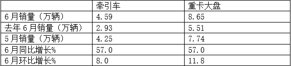 特點(diǎn)一:6月同比持平、環(huán)比跑輸重卡大盤(pán)