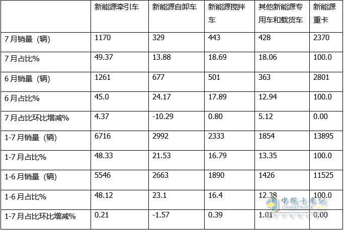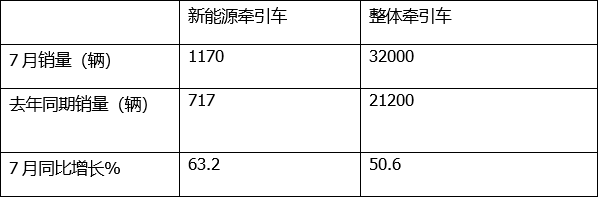 總之,今年7月的新能源牽引車(chē)表現相對較好。