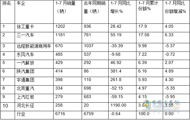 1、7月徐工強勢奪冠,陜汽、解放分列二、三