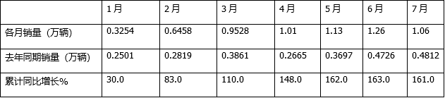 特點(diǎn)二、1-7月銷(xiāo)量累計同比演繹“7連大漲”