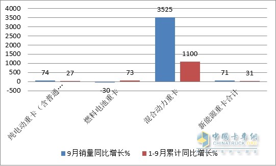 三:無(wú)論是9月還是1-9月,混動(dòng)重卡均領(lǐng)漲新能源重卡大盤(pán)