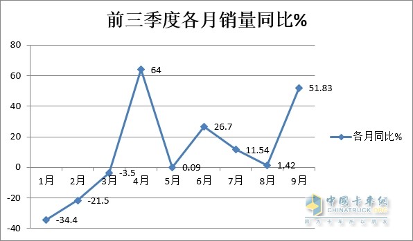 特點(diǎn)一、月度銷(xiāo)量同比依次演繹“3連降”和“6連漲”;二季度成為推動(dòng)今年前三季度中卡市場(chǎng)增長(cháng)的主要貢獻者