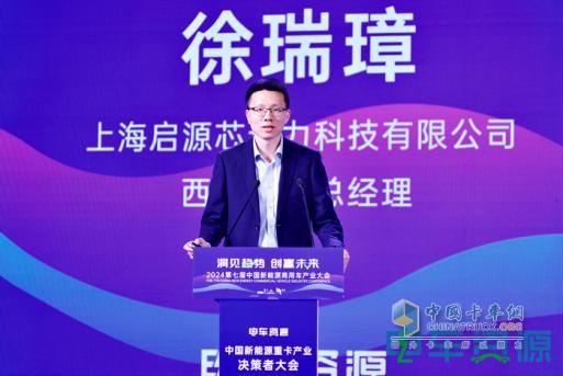 上海啟源芯動(dòng)力科技有限公司西南大區總經(jīng)理徐瑞璋發(fā)表了《融通共贏(yíng) 驅動(dòng)綠電交通新質(zhì)發(fā)展》的主題演講。他表示,啟源芯動(dòng)力是交通強國試點(diǎn)任務(wù)牽頭實(shí)施單位,將建設全國性換電干線(xiàn)組網(wǎng)。
