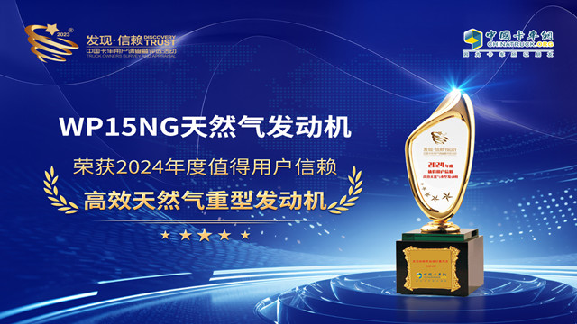 濰柴WP15NG天然氣發(fā)動(dòng)機榮獲“2024年度值得用戶(hù)信賴(lài)高效天然氣重型發(fā)動(dòng)機”