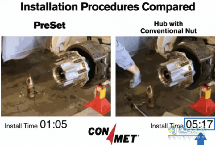 康邁PreSet®輪轂單元(左)v.s傳統輪轂單元(右)