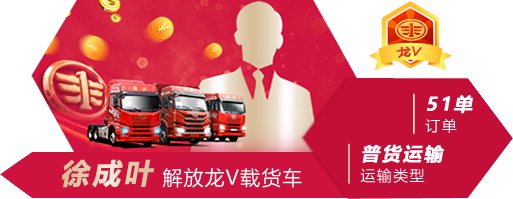 2020年4月1日,一汽解放青汽、運滿(mǎn)滿(mǎn)&貨車(chē)幫聯(lián)合舉辦,開(kāi)啟了定義車(chē)接單王、發(fā)貨王評選活動(dòng)第一賽季?;顒?dòng)期間,跑車(chē)的同時(shí)還能贏(yíng)大獎,蔣師傅抱著(zhù)練手的心態(tài)參加了比賽,并截止到2020年6月15日,以35單的訂單量入圍一汽解放青汽JH6牽引定義車(chē)組前十。【查看詳情】